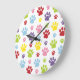 Colourful Paws, Paw Pattern, Dog Paws, Paw Prints Large Clock