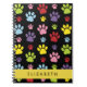 Colourful Paws, Paw Pattern, Dog Paws, Your Name Notebook