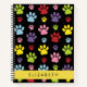 Colourful Paws, Paw Pattern, Dog Paws, Your Name Notebook