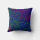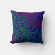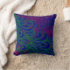 This eclectic throw pillow features a colourful maximalist abstract peacock design. A bold multi-coloured peacock feather is majestically flaunted in bright blue and green against a complimentary abstract blue, purple and magenta background with complimentary paint splashes.