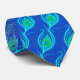 Stylish royal blue neck tie with a aqua and blue peacock feather pattern. Great tie for any occasion.