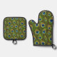 Colourful Peacock Feathers Print Oven Mitt & Pot Holder Set