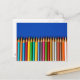 Colourful pencil crayons on blue background postcard