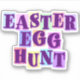 A contour sticker of a colourful pennant style "Easter Egg Hunt" label . Created by Dogwood and Thistle. These contour stickers have a die-cut look and have only a small trim area that follows the contour of the design.