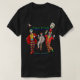 I give wanted to give this a 4 instead of a 5 because these Basic DARK T0shirts run unexpectedly SLIM or Narrow. Which is great if you do not have a potbelly, but I have a paunch. It isn't the shirt's fault that I've got a beer belly. The design and shirt itself is a quality cotton shirt. The color is more of a deep purple, but still a very pretty color. The Basic DARK T-shirts run a bit SLIMMER than the Basic Ts. The neck is a fraction narrower (or seems to be narrower) also. I'm a paunchy middle-aged woman and my neck is 12 inches (31cm) thick and the neckline fell about the same as in the photo of the man, and I had the desire to tug it a bit. So if you're a thick necked man or like loose shirts, be aware these are slimmer shirts. Once I get rid of my lockdown paunch it'll look great. The shirt washed well in cold water with no apparent bleeding. We don't have a dryer, so it hung dry. Did not shrink. Love the colors and the design. The design looks smaller on my shirt than it does on the model on-line. But still, it looks good on the shirt. The printing looks as it does on the model, just the size seems fractionally smaller. Washed garment in cold water, hung dry and design appeared unaffected.