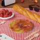 Colourful Phoenix Flying Against a Fiery Backgroun Paper Plate