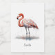 Painting of a colourful pink flamingo standing in the water in pointillism style