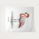 Painting of a colourful pink flamingo standing in the water in pointillism style