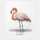 Painting of a colourful pink flamingo standing in the water in pointillism style