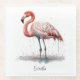 Painting of a colourful pink flamingo standing in the water in pointillism style