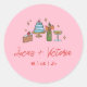 Colourful Pink Hand Drawn Funky Written Wedding Classic Round Sticker