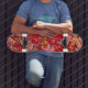 Skateboard deck with awesome colourful red and pink abstract floral design, designed by IolantesDesigns :-)!