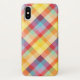 Bright and fun custom phone case featuring colourful pixels plaid geometric pattern.
