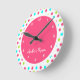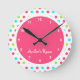 Colourful Polka Dot Kid's Bedroom wall clock. Pink, blue and green. Perfect for a little girl's room. Available in several other colours to fit your home decor.