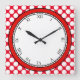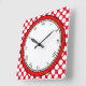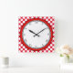Get playful with this colourful and fancy wall clock! Most of the clock face is white, making the black Roman digits easy to read. The outer parts is where the colourful fun begins! First there is a bright red circle adding a little craziness. Then white polka dots cover the entire border, on a bright red background. You can replace the red background as you like by customising this product!