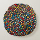 Colourful Polka Dots on Dark Background Round Cushion