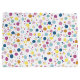 The design features a vibrant dance of polka dots in a mesmerising blend of colours, their sizes and positions playfully unpredictable.