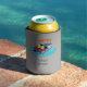This grey coloured can cooler features an illustration of a pontoon boat in bright colours with text at the bottom for adding your own boat's name, your captain's name or a short message. These can coolers make a great personalised gift for pontoon boat owners and are a great way to keep your drinks cool while you're out on the water.