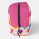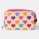 A vibrant and cheerful seamless pattern featuring colourful hearts in pop art style, with textured designs in shades of pink, yellow, purple, blue, and red, complemented by small white hearts on a soft peach background. Perfect for Valentine’s Day designs, wallpapers, or crafts.