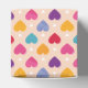 A vibrant and cheerful seamless pattern featuring colourful hearts in pop art style, with textured designs in shades of pink, yellow, purple, blue, and red, complemented by small white hearts on a soft peach background. Perfect for Valentine’s Day designs, wallpapers, or crafts.