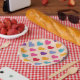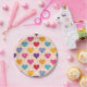 A vibrant and cheerful seamless pattern featuring colourful hearts in pop art style, with textured designs in shades of pink, yellow, purple, blue, and red, complemented by small white hearts on a soft peach background. Perfect for Valentine’s Day designs, wallpapers, or crafts.