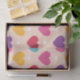 A vibrant and cheerful seamless pattern featuring colourful hearts in pop art style, with textured designs in shades of pink, yellow, purple, blue, and red, complemented by small white hearts on a soft peach background. Perfect for Valentine’s Day designs, wallpapers, or crafts.