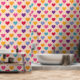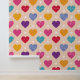 A vibrant and cheerful seamless pattern featuring colourful hearts in pop art style, with textured designs in shades of pink, yellow, purple, blue, and red, complemented by small white hearts on a soft peach background. Perfect for Valentine’s Day designs, wallpapers, or crafts.
