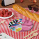 Shades of blue, purple, and pink come together in this beautifully vibrant pop art portrait of a ring-tailed lemur that's both trendy and modern.