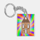 Colourful Psychedelic Brick House Rainbow Design Key Ring