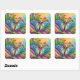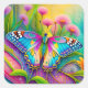 Colourful Psychedelic Butterfly and Wildflowers Square Sticker