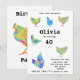 A collection of colourful, psychedelic chickens in vibrant pink, purple, blue, orange, yellow and aqua. A cute multicoloured chicken birthday party invitation. This fun 40th party invitation is easy to personalise to create a unique party invitation suitable for children and adult chicken lovers. Colourful psychedelic chickens illustrations by artist Catherine Sweetman