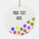 Colourful Puppy Paw Prints With Custom Text Ceramic Tree Decoration