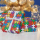 Each puzzle piece is rendered in vivid hues—think lively reds, blues, greens, and yellows, creating a dynamic and eye-catching design. This whimsical wrapping paper is ideal for birthdays, children’s parties, or any celebration where you want to bring a smile to someone’s face.