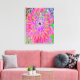 This Original Digital Oil Painting by My Rubio Garden features an Abstract Colourful Rainbow Decorative Dahlia Flower featuring hot pink, orange, magenta, purple, lime green and blue accents. The result is a colourful, bold, floral painting that you will love!