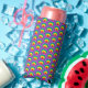 Colourful rainbow colours hexagon pattern seltzer can cooler