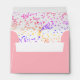 This envelope interior has a festive rainbow colourful confetti with template return address on the back flap. Fill in the template fields with your information, remove any text or edit using the design tool to select a font style, size, and colour you like.
