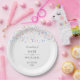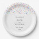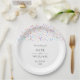 Colourful rainbow confetti decorates this stylish paper plate personalised with your names and special date. Designed by Thisisnotme©