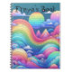 This vibrant spiral notebook features a whimsical, rainbow-colored fantasy landscape with swirling clouds, rolling hills, and two glowing suns in a dreamy sky. The colourful design sparks imagination and is perfect for kids, students, or anyone who loves magical and artistic scenes. With soft pastel tones and flowing lines, it adds a fun, uplifting vibe to everyday note-taking. Fully customizable — you can easily add a child's name to make it a truly special and personal gift for school, journaling, or creative writing.