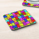 Jigsaw puzzle pattern in colourful rainbow colours.