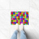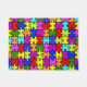 Jigsaw puzzle pattern in colourful rainbow colours.