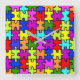 Colourful rainbow jigsaw puzzle pattern square wall clock