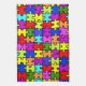 Jigsaw puzzle pattern in colourful rainbow colours.