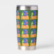 For the tropical bird fan! Trendy, stainless steel, thermal tumbler for your hot or cold drinks that features the photo image of a colourful Rainbow Lorikeet parrot with blue head and red eyes and printed in a repeating pattern.