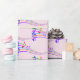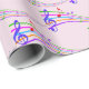 Rainbow music notes and treble clef symbol on a pastel pink background.