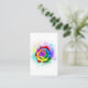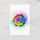 Large, blooming rose with rainbow petals on white background, painted over with splashes of colourful, bright paint. 3d