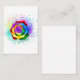 Large, blooming rose with rainbow petals on white background, painted over with splashes of colourful, bright paint. 3d