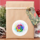Large, blooming rose with rainbow petals on white background, painted over with splashes of colourful, bright paint. 3d