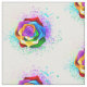 Large, blooming rose with rainbow petals on white background, painted over with splashes of colourful, bright paint. 3d