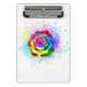 Large, blooming rose with rainbow petals on white background, painted over with splashes of colourful, bright paint. 3d