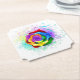 Large, blooming rose with rainbow petals on white background, painted over with splashes of colourful, bright paint. 3d